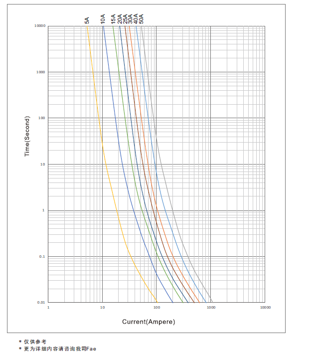 注明:溫度上升值:恒定保險絲表面溫度減去當前室溫(環境溫度)。