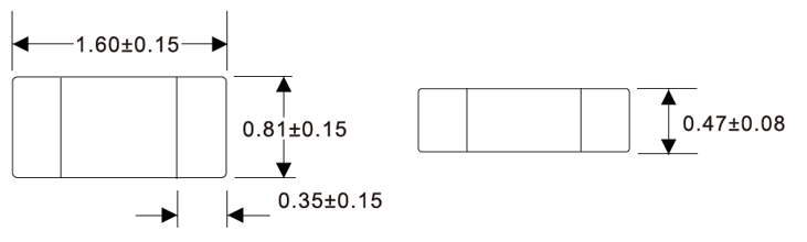 06.000 | 0603 | / | 63/32 | 1A~8A | JDYX2.E365879 | 1.6*0.81*0.65mm | Body: Ceramic Terminal: Silver over-plated with tin | FAST ACTING |